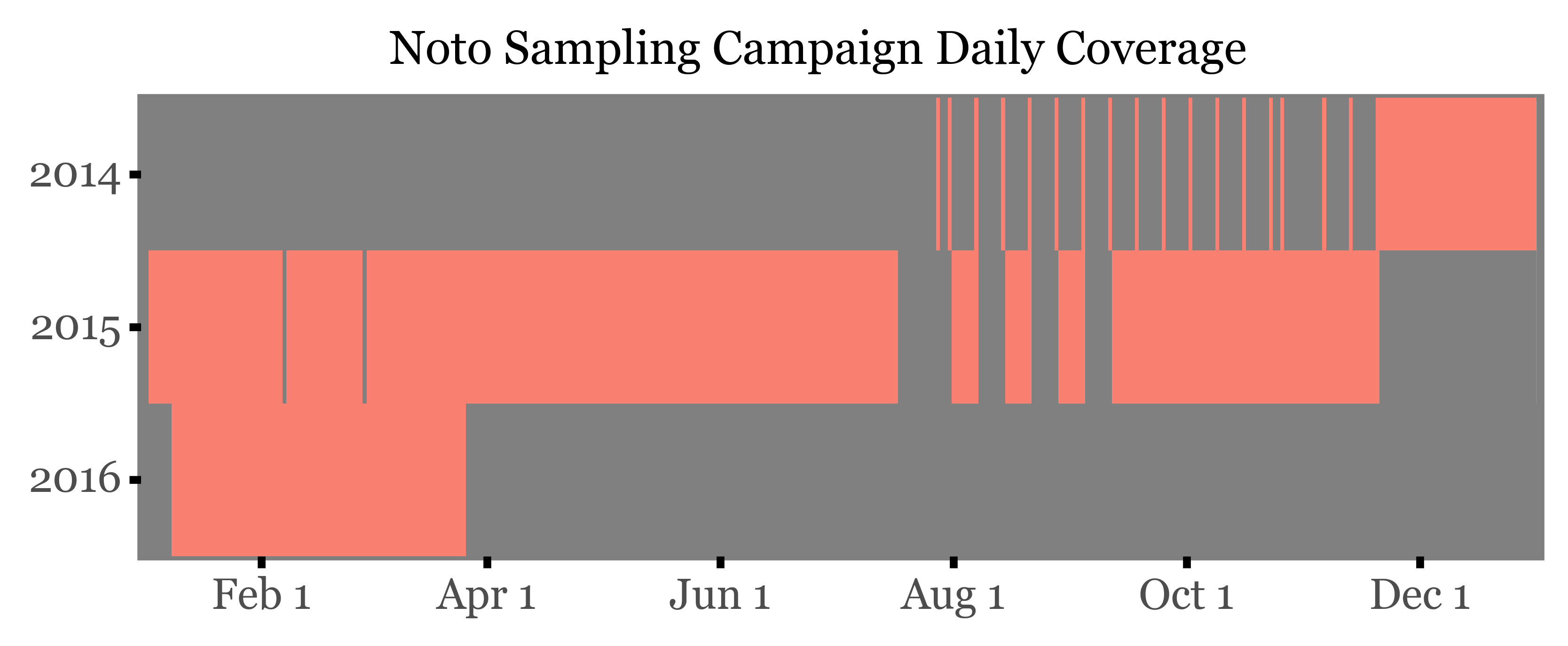 + p9.labs(x='', y='', title='Noto Sampling Campaign Daily Coverage')