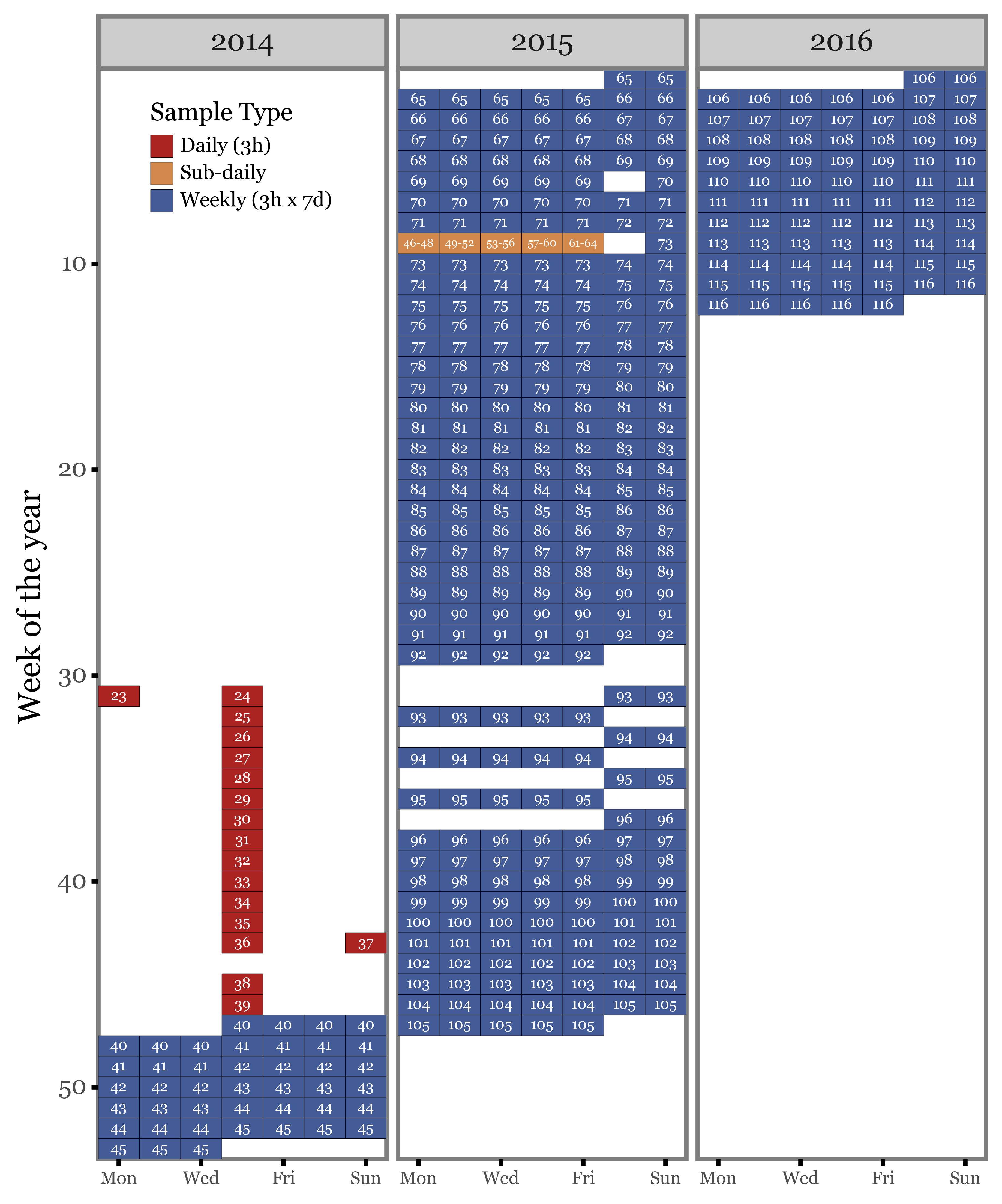 If we look at the daily coverage from 2014 to 2016: