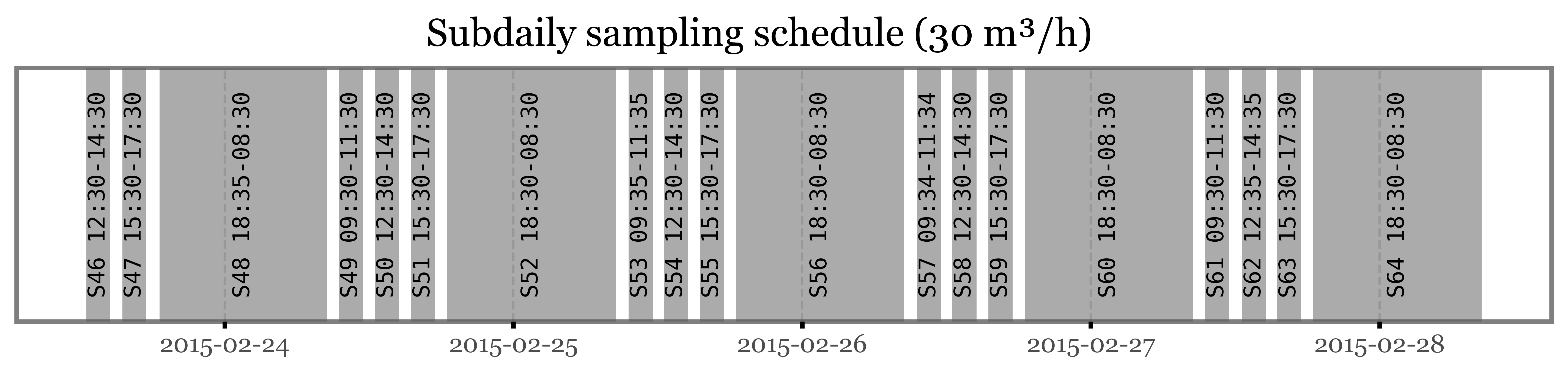 The start of the campaign in 2014 was marked by a number of samples where the sampling wasn’t properly set up, so that what were supposed to be weekly samples ended up being daily samples taken a week apart. This was corrected in the following weeks, starting at the end of November 2014, and from then on the sampling was done on a weekly basis, programming the HVS to sample from 12:00 to 15:00 every day and chaning the filter every week.