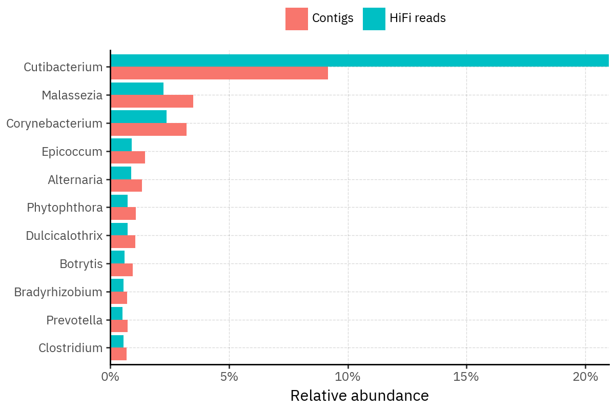 pl.col("kind").replace({"contigs": "Contigs", "reads": "HiFi reads"})