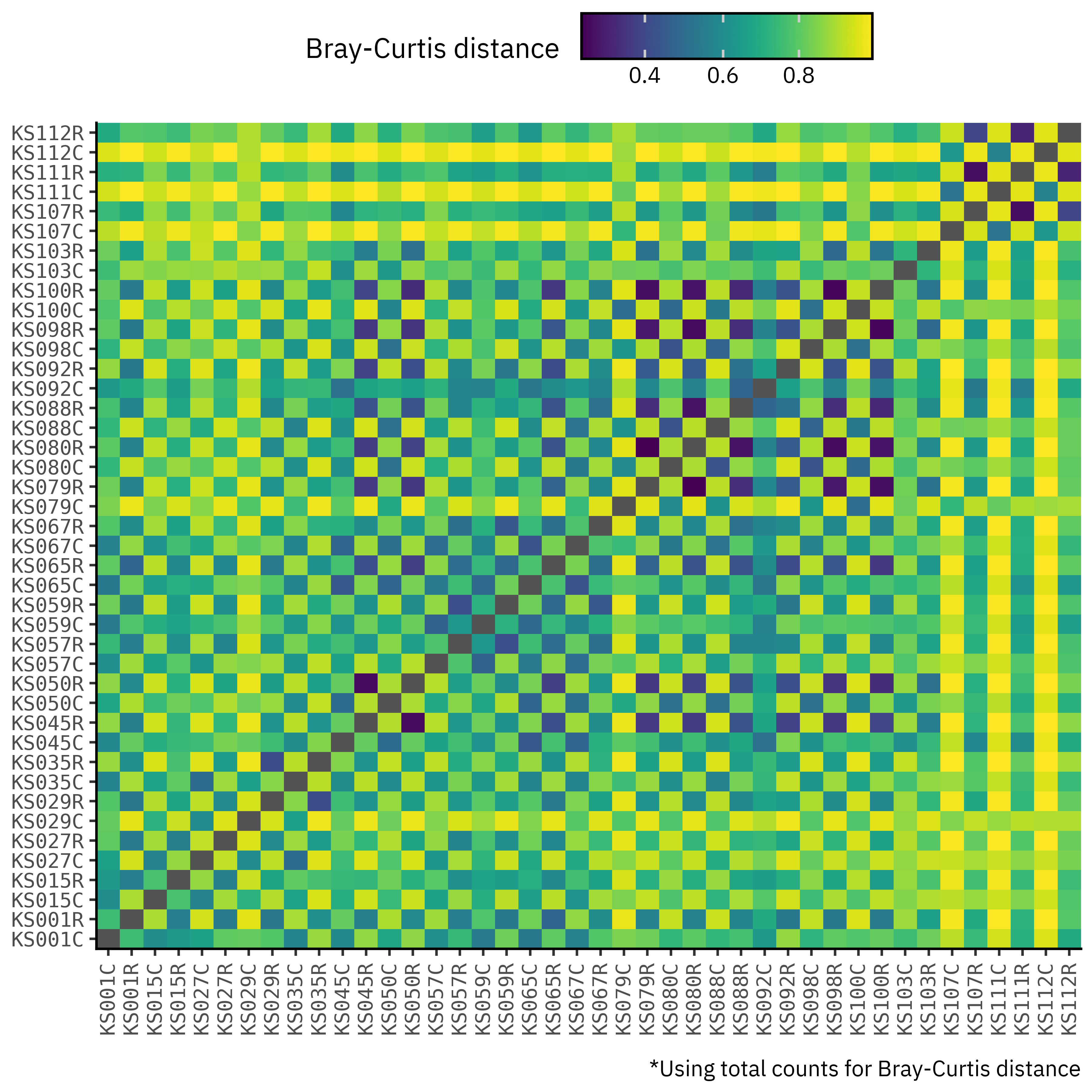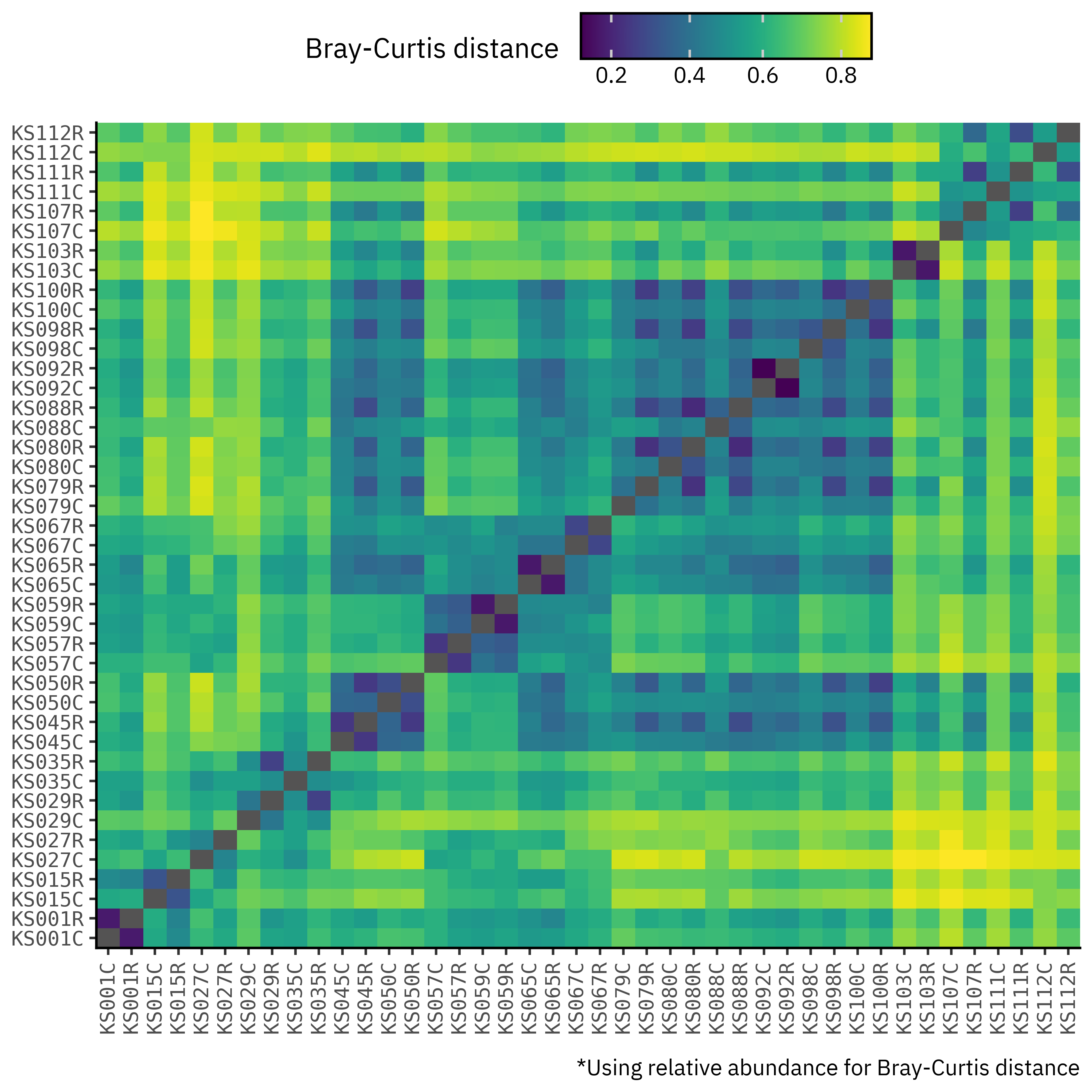 - Shannon diversity index: combines richness and evenness, giving more weight to rare taxa than dominance-focused indices.