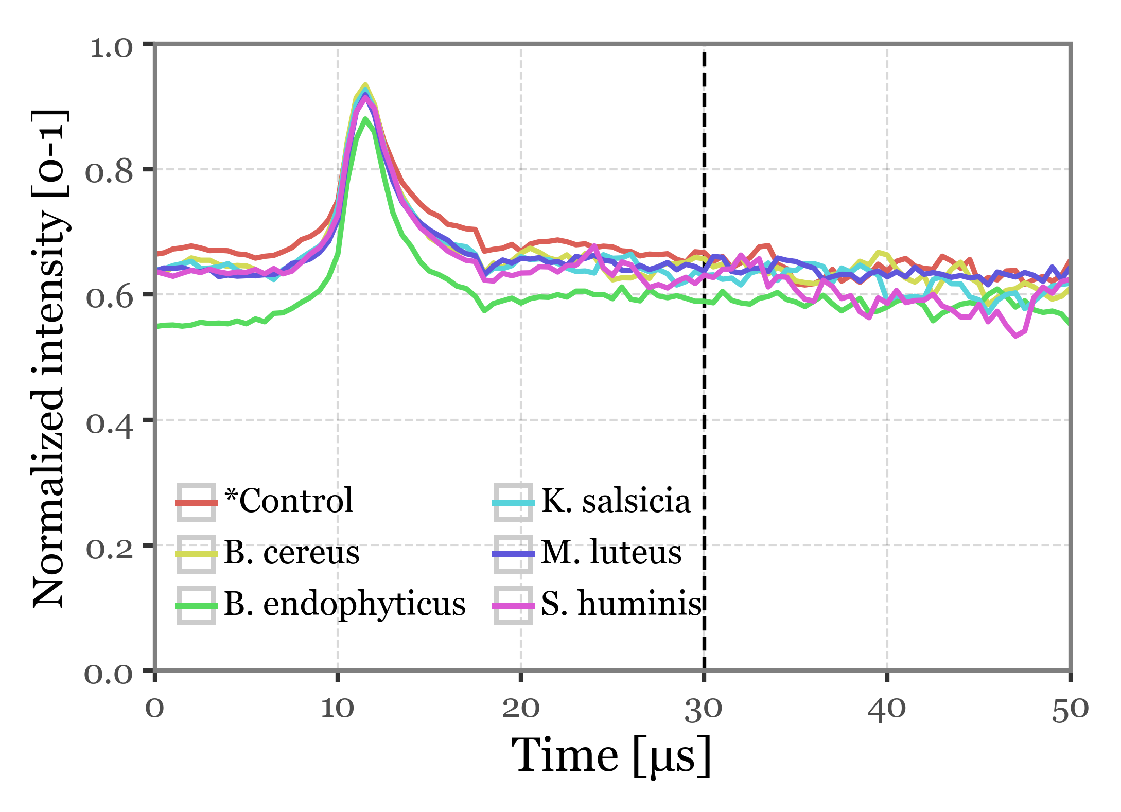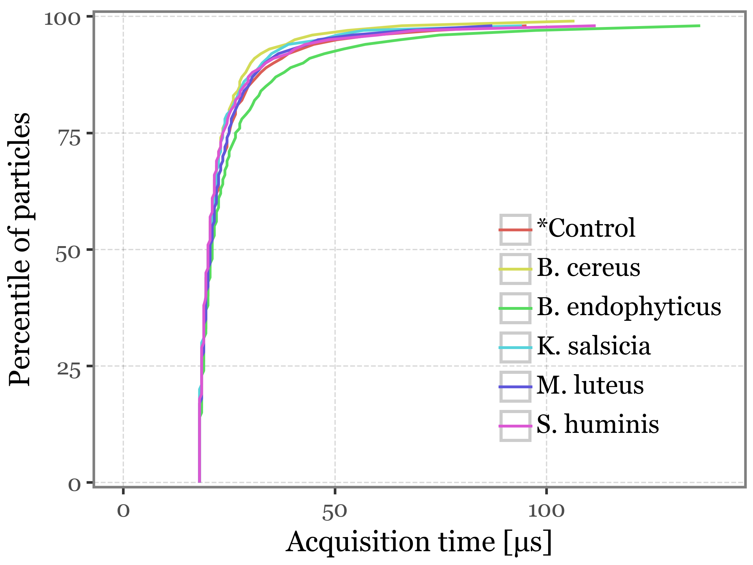 In this notebook, we will explore the bacterial-enriched bioaerosols aerosolized with the PALAS AGK 2000, which we then passed through the Rapid-E device with the changed UV laser. We will be loading only the very last 10 minutes of data from the deviced during the times of sampling of each of the 5 bacterial species + the control sample (ringer solution).